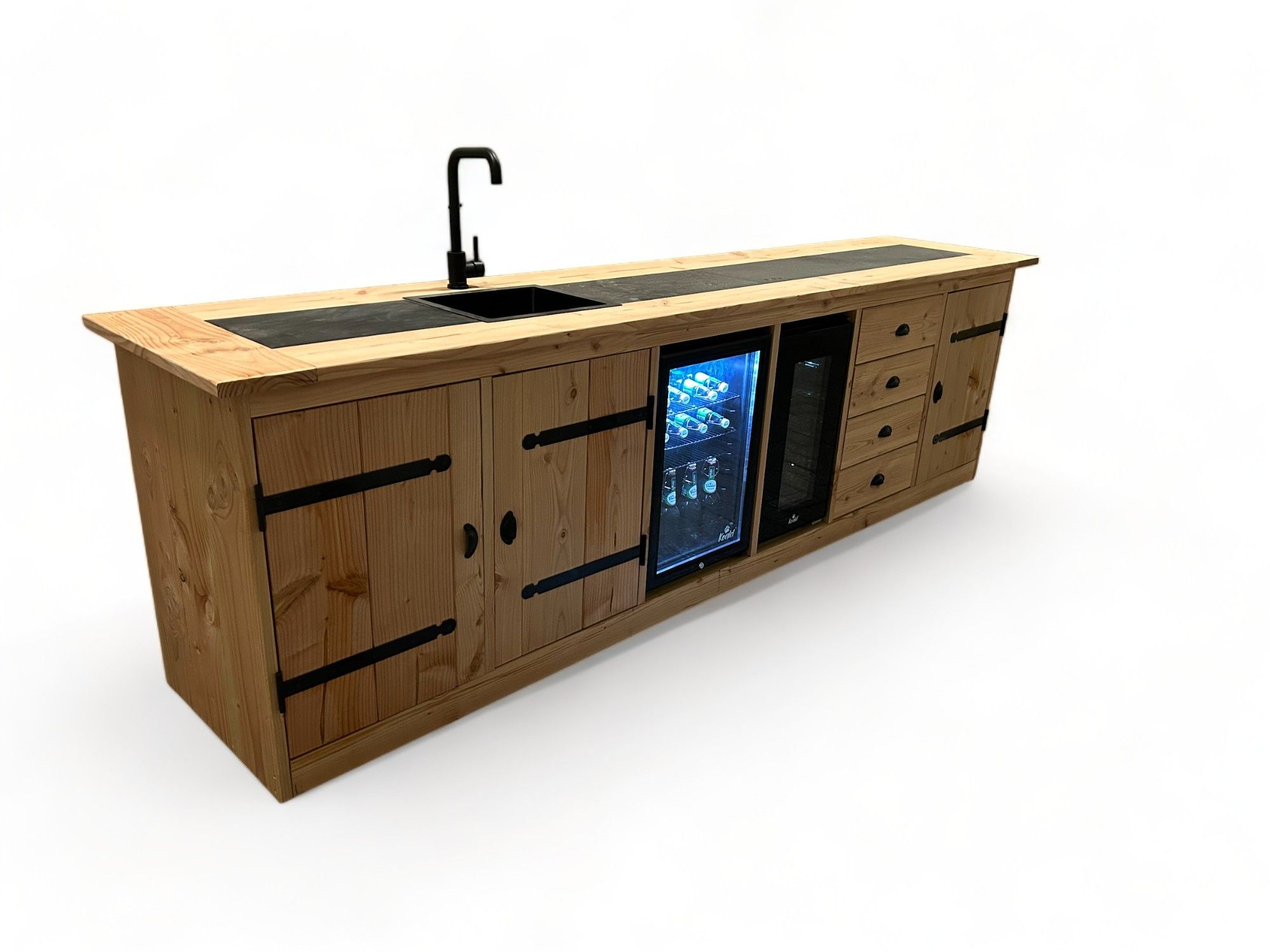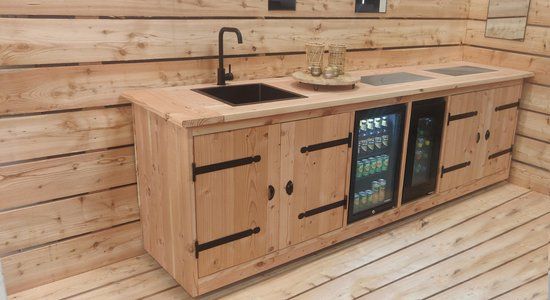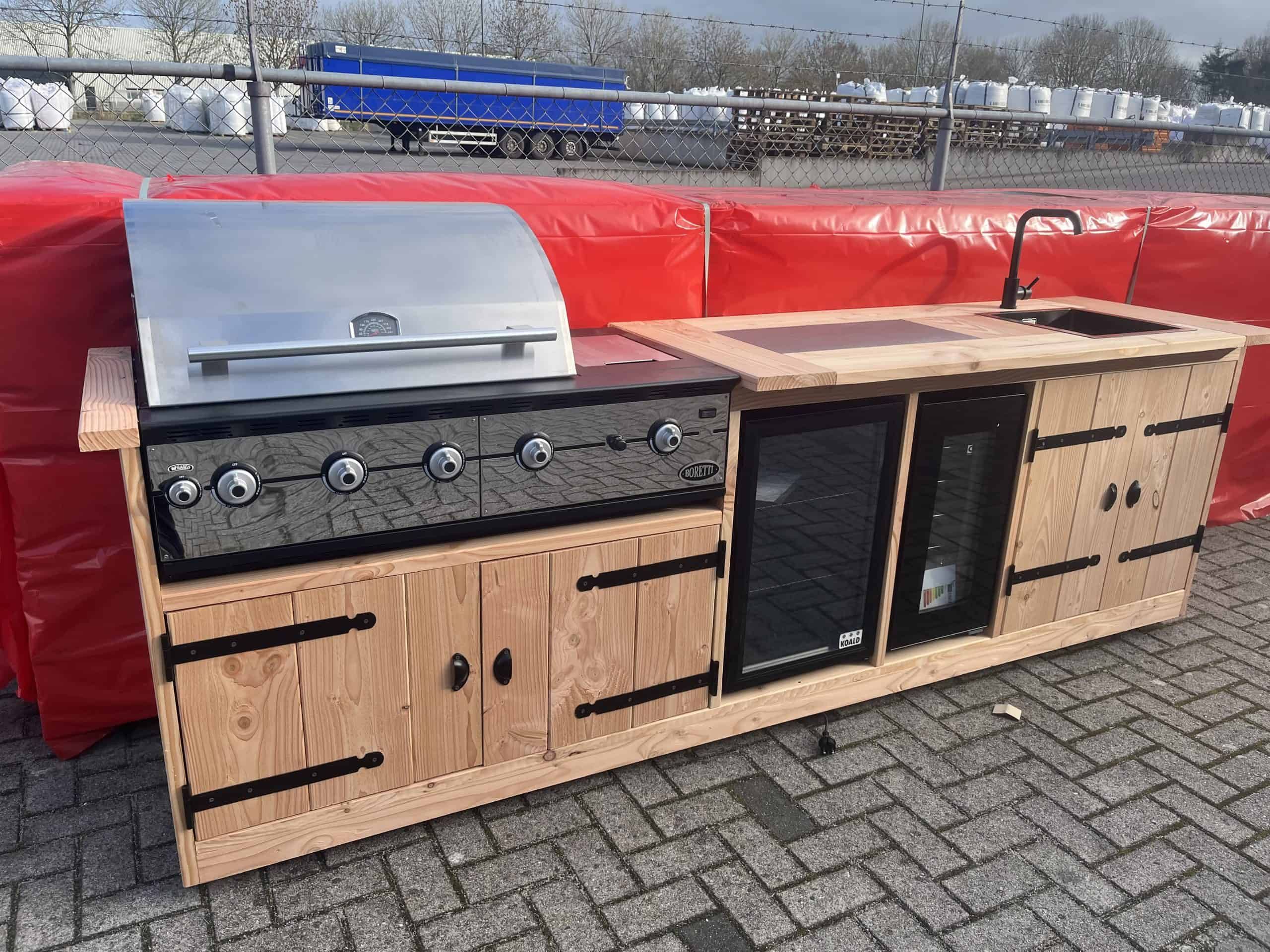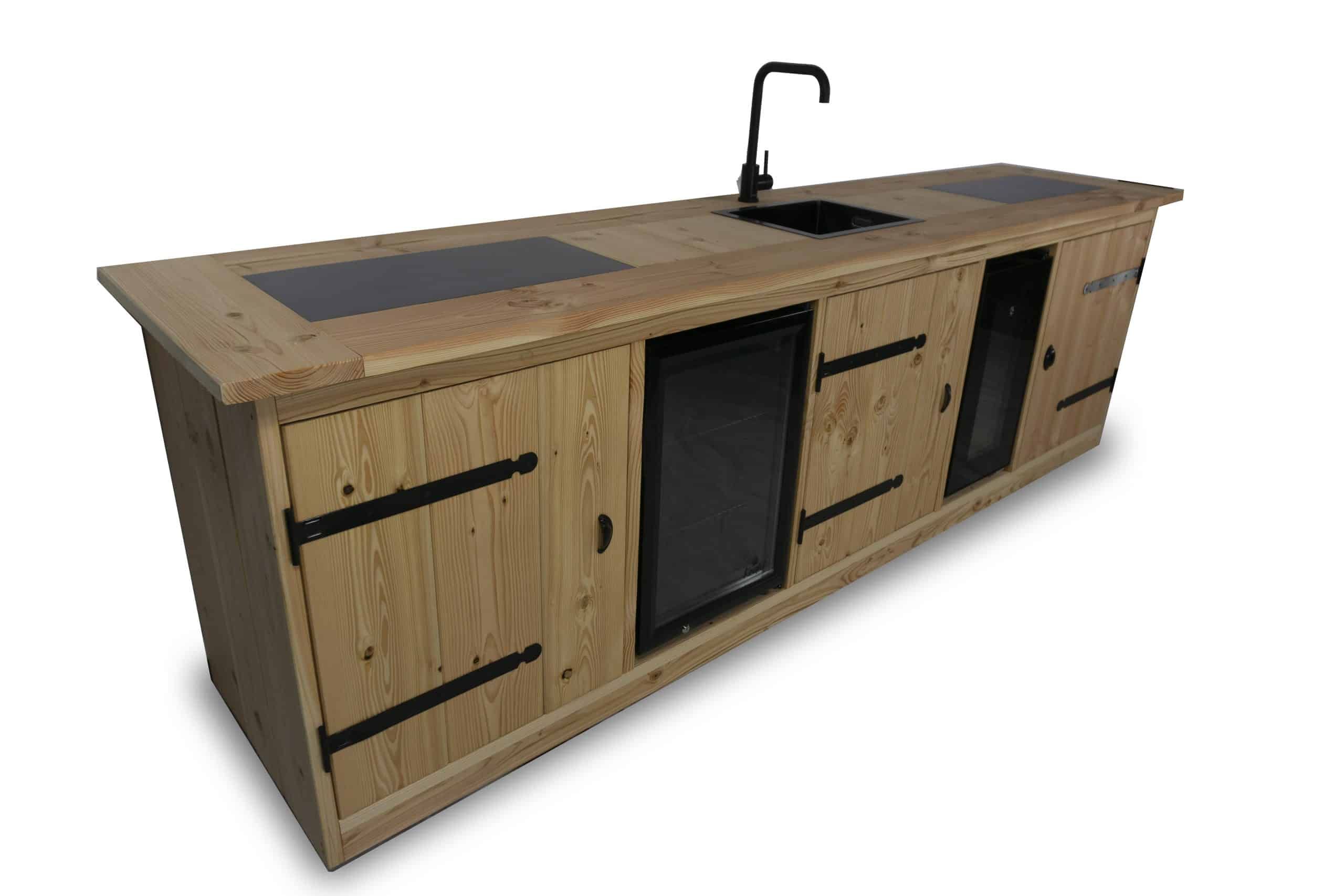 Mit einer Outdoor Küche aus Holz passt diese perfekt zu deiner Überdachung. Beide Produkte bestehen aus Douglasienholz. Dadurch entsteht in deinem Garten ein schönes Gesamtbild. Achte jedoch darauf, dass du dieselbe Holzart oder zumindest eine ähnliche Holzart wählst. Für Beratung zu Outdoor Küchen und dem Material, das du am besten verwenden kannst, kannst du unsere Mitarbeiter jederzeit um Hilfe bitten. Sie erzählen dir gerne mehr über die Materialien, die Auswahlmöglichkeiten und die Vor- und Nachteile. So bist du sicher, dass du die richtige Wahl aus unserem Sortiment an Outdoor Küchen triffst. Wir können deine Outdoor Küche auch schwarz oder weiß machen. In unserem Konfigurator kannst du einfach die Farbe der Outdoor Küche wählen.