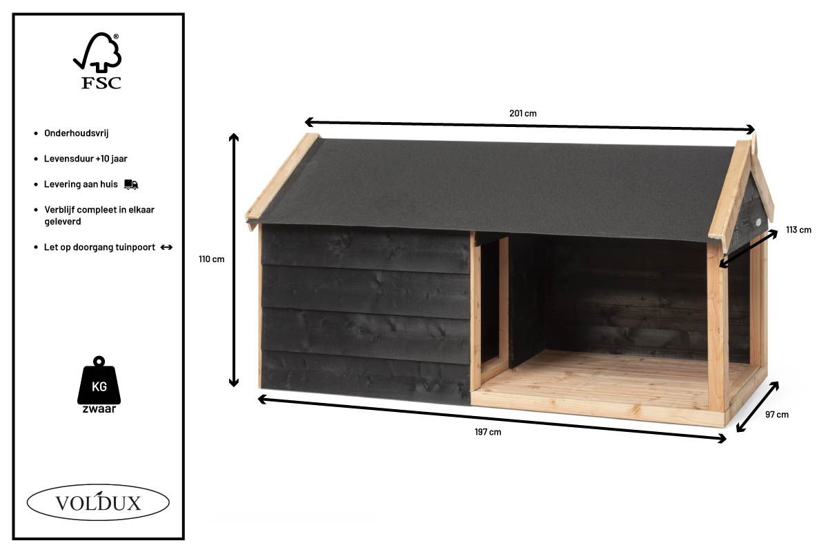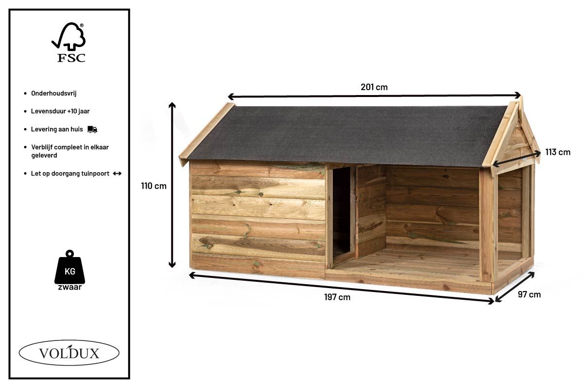 Mit einem luxuriösen Hundezwinger von Zaunonline haben Sie einen zusätzlichen Lebensraum für Ihren Hund, aber im Freien. Mit diesem Zwinger wird es ihm oder ihr an nichts fehlen. Denken Sie an ausreichend Platz, um sich zu bewegen, einen Platz zum Liegen, ein Dach für ausreichenden Schutz und ein Tor, das offen und verschlossen bleiben kann. Da dieser Hundezwinger eine Überdachung bietet, kann Ihr Hund auch bei schlechtem Wetter draußen bleiben. Wenn Sie also in den Supermarkt gehen, steht Boris nicht im strömenden Regen. Sobald Sie nach Hause kommen, kann er trocken und gesund ins Haus kommen.