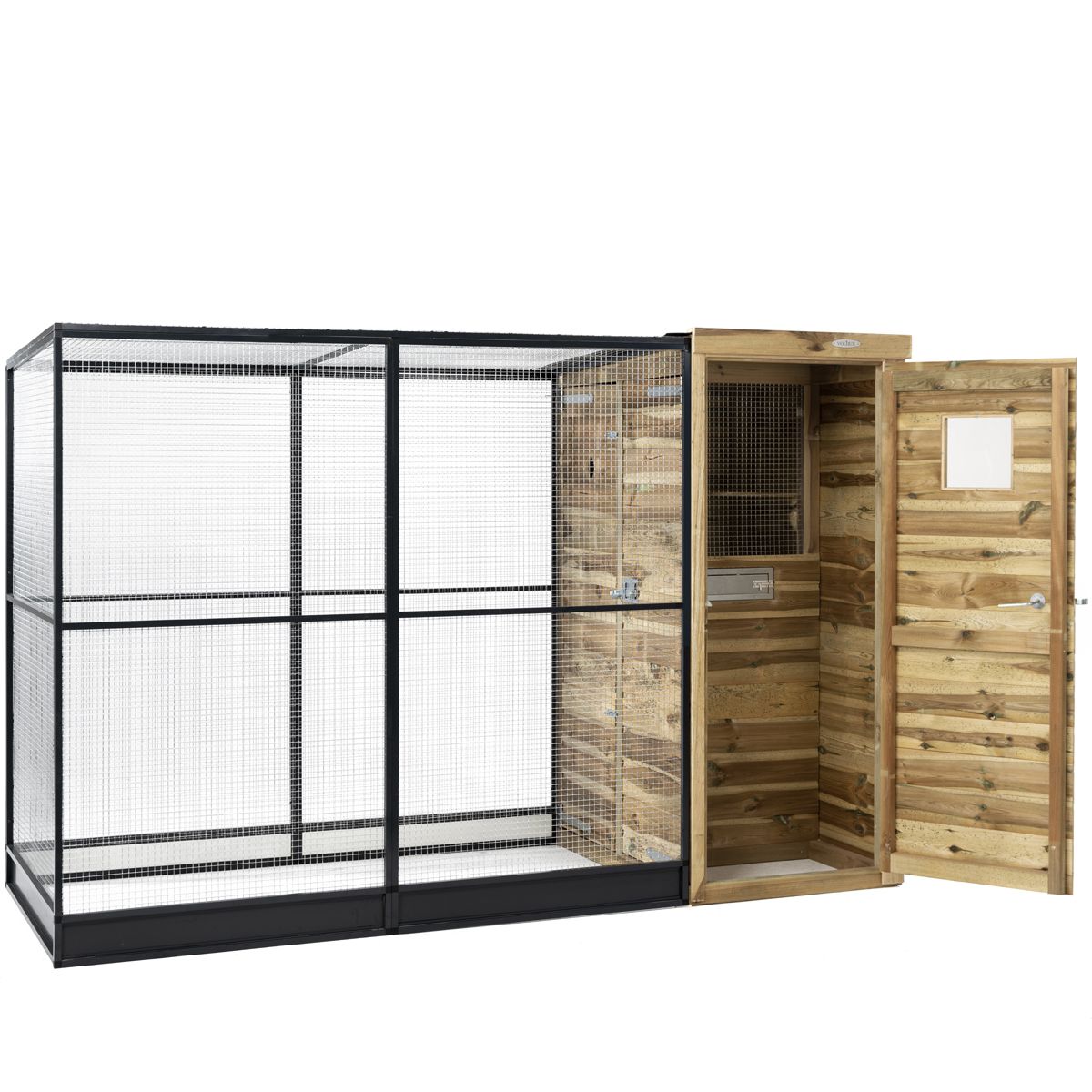 Eine der wichtigsten Eigenschaften der Vogelvolieren von Zaunonline ist die Verwendung von wartungsfreiem imprägniertem Holz. Dieses Material ist nicht nur stark und langlebig, sondern auch wetterbeständig. Die imprägnierte Behandlung schützt das Holz vor Feuchtigkeit, Schimmel und Holzfäule, was bedeutet, dass Ihre Voliere auch nach einiger Zeit noch wunderschön aussieht. Dies minimiert den Bedarf an zeitaufwändiger Wartung und verlängert die Lebensdauer Ihrer Voliere erheblich. Dank der Verwendung von imprägniertem Holz können unsere Volieren eine Lebensdauer von 10-15 Jahren erreichen.