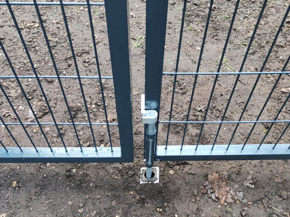 Normalerweise steckt man ein Torriegel in den Boden. Dafür muss man ein Loch graben, in das das Schloss genau passt. Manchmal verwendet man auch einen Stopper, um das Schloss richtig schließen zu können.