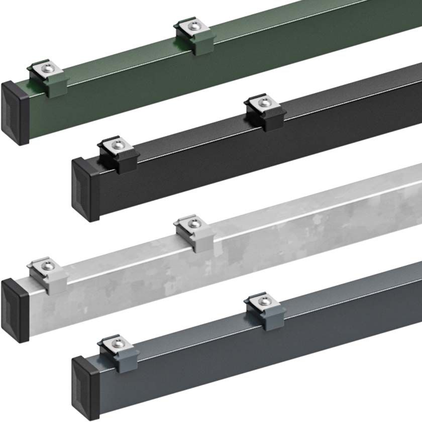 Unsere Zaunpfosten in Anthrazit sind speziell für den Einsatz mit Doppelstabmatten entwickelt. Sie sind feuerverzinkt und pulverbeschichtet, was sie besonders widerstandsfähig gegen Rost, Witterung und UV-Strahlung macht. Du bekommst sie bei uns in verschiedenen Längen und Ausführungen – als: